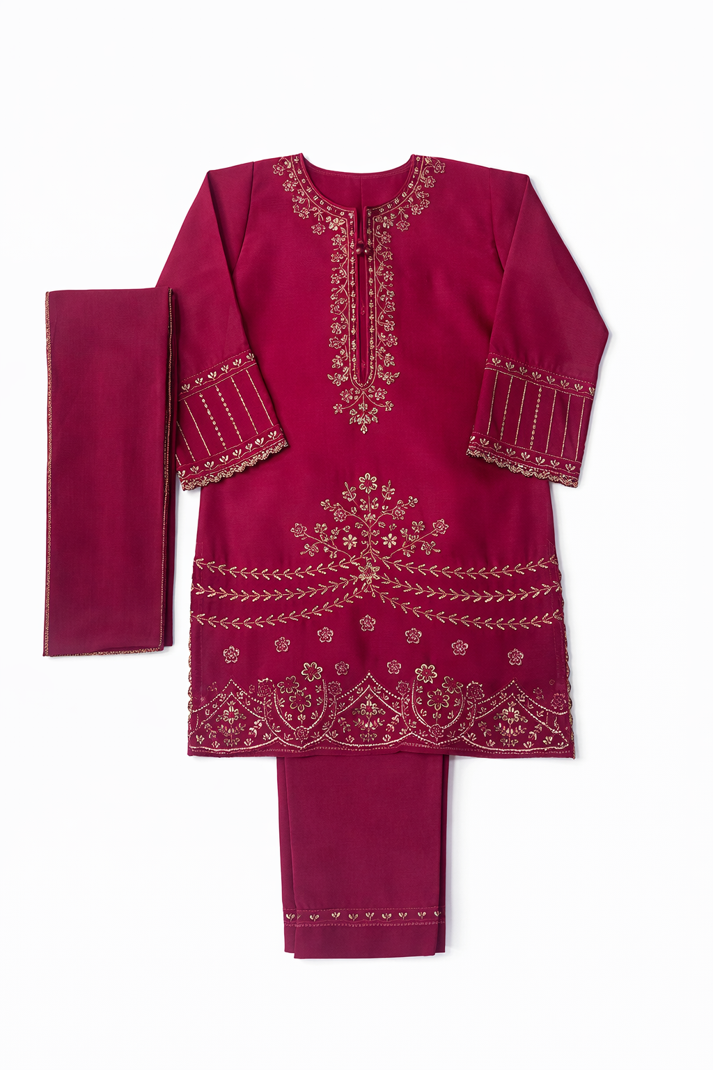 Elegant and graceful, this chiffon eastern outfit features a beautifully crafted shirt paired with a matching dupatta and trouser. Made from lightweight, flowy chiffon, it offers both comfort and style—perfect for festive occasions, weddings, and special celebrations.