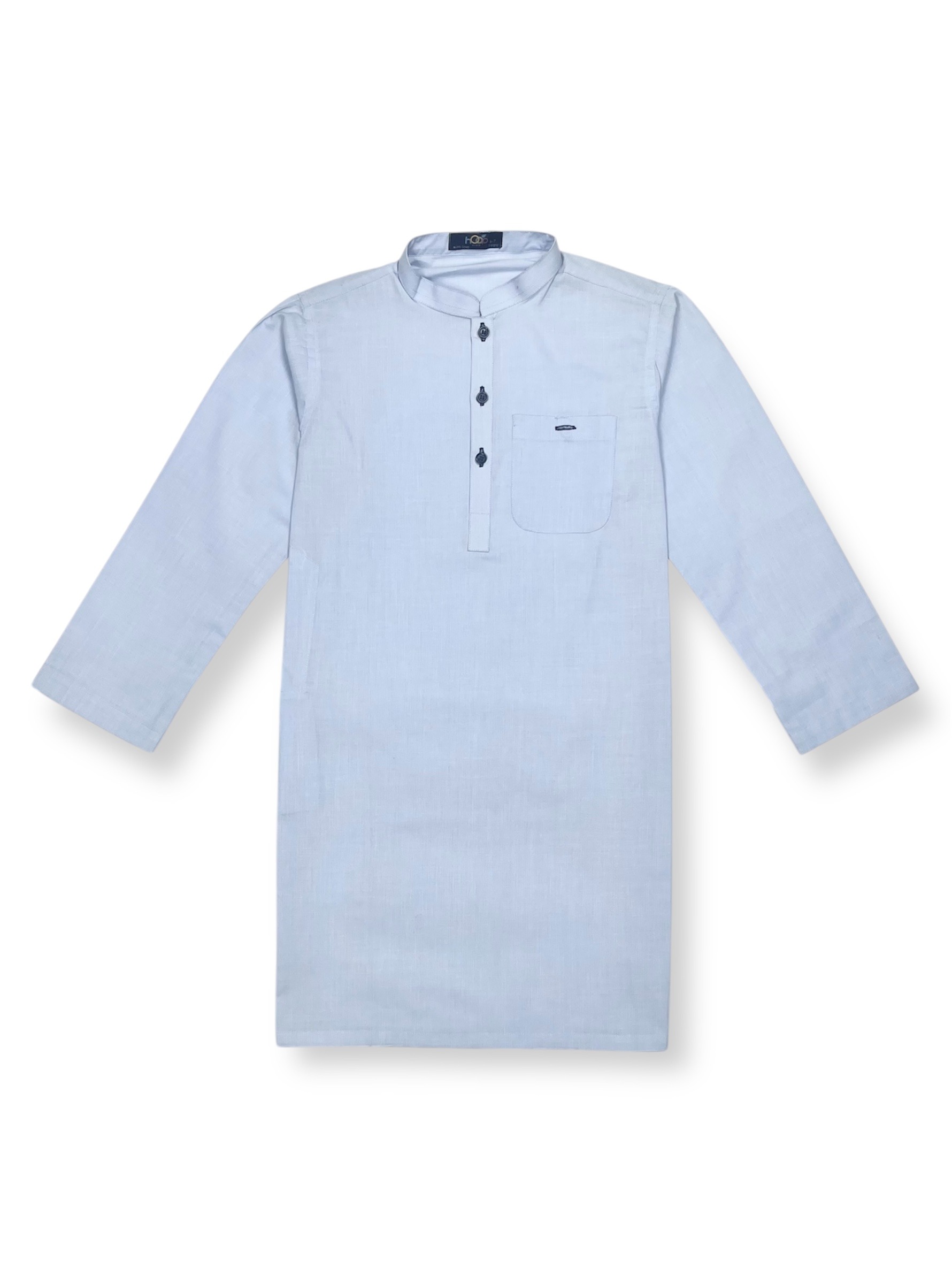 This sky blue boys’ kurta is crafted from soft, breathable cotton fabric, ensuring maximum comfort for all-day wear. The lightweight material keeps your little one cool and relaxed, making it perfect for both casual and semi-formal occasions.